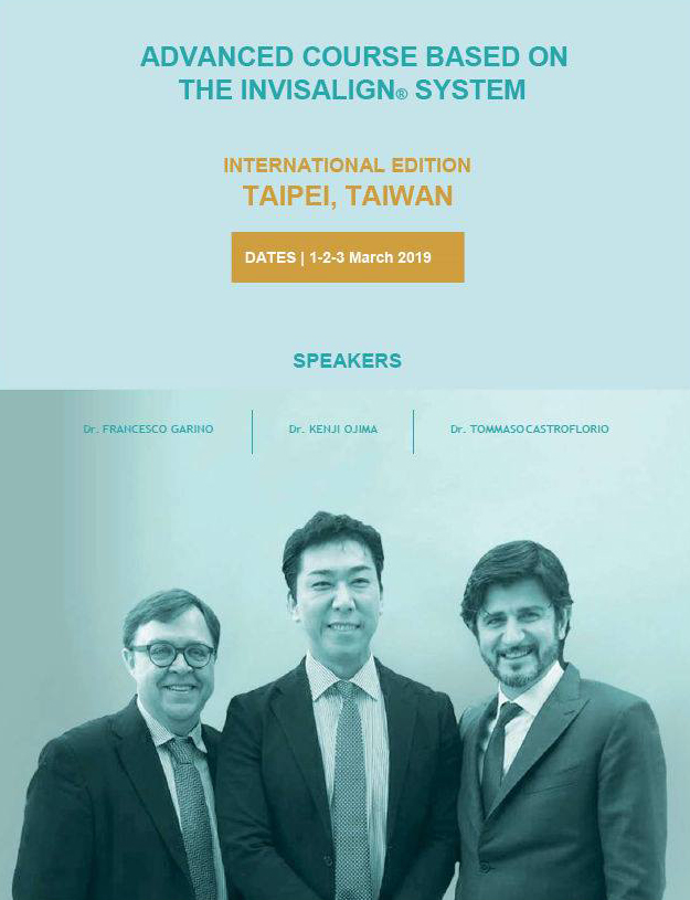 ADVANCED COURSE BASED ON THE INVISALIGN(R) SYSTEMLOCATION:TAIPEI, TAIWAN SCHEDULE:1-2-3 March 2019 SPEAKERS:Dr. FRANCESCO GARINO Dr. KENJI OJIMA Dr. TOMMASO CASTROFLORIO |